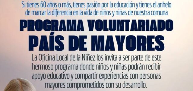 Ya puedes acercarte a la Oficina Local de la Niñez, e inscribirte para ser parte del Programa Voluntariado País de Mayores en su versión 2026.